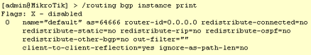 Tahap selanjutnya adalah konfigurasi BGP instance. Yang perlu di-set di sini hanyalah AS Number Anda, pada kasus ini kita menggunakan AS Number private, yaitu 64666.